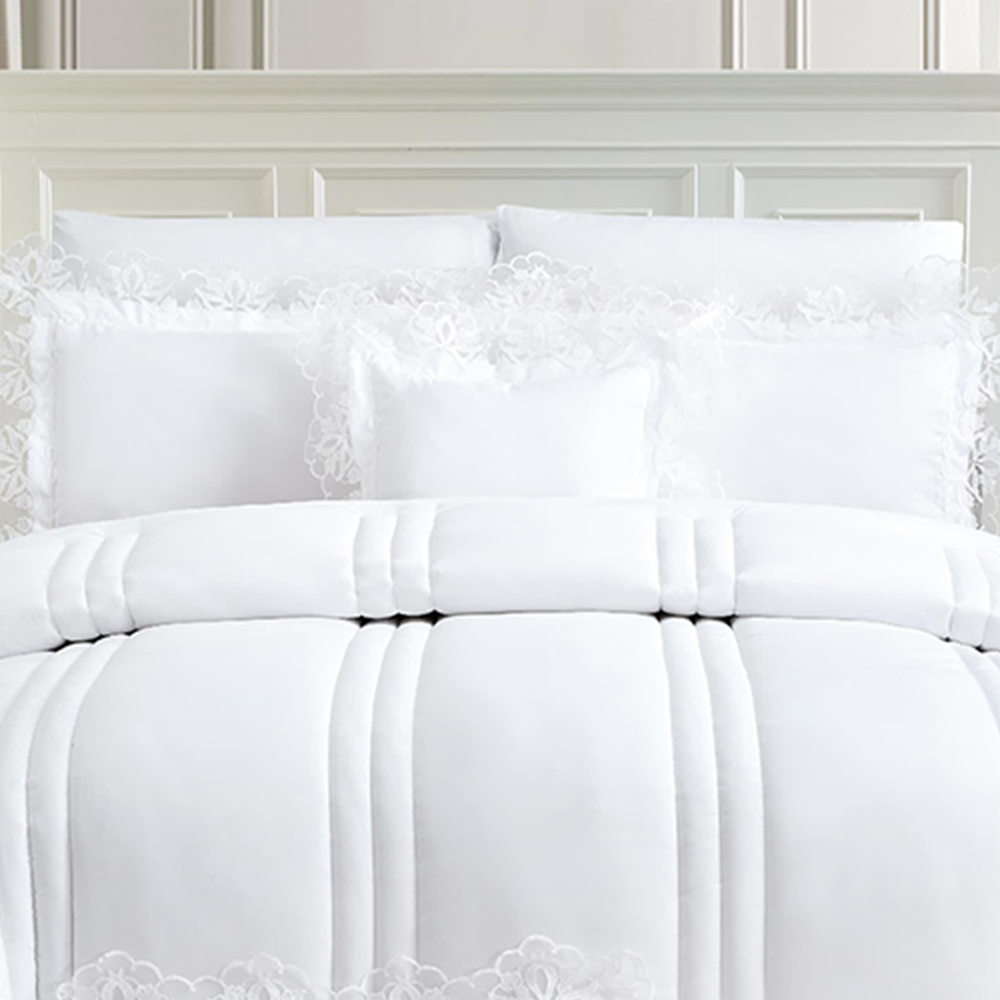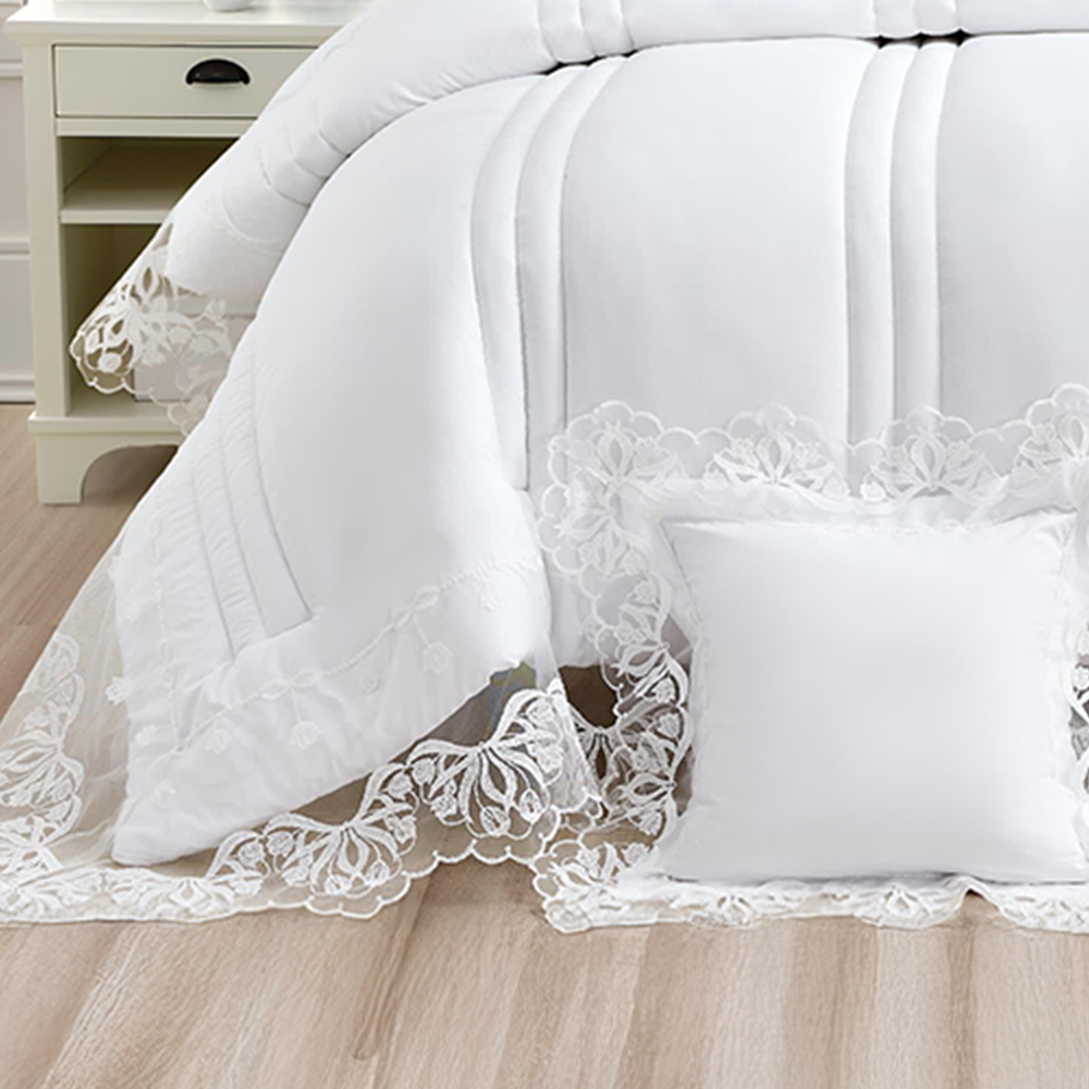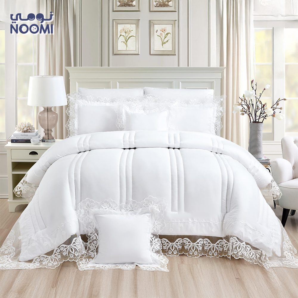 - خامة مايكروفايبر عالية الجودة ومزينة بدانتيل تعكس جمالًا ورُقيًا لا يُقاوم
