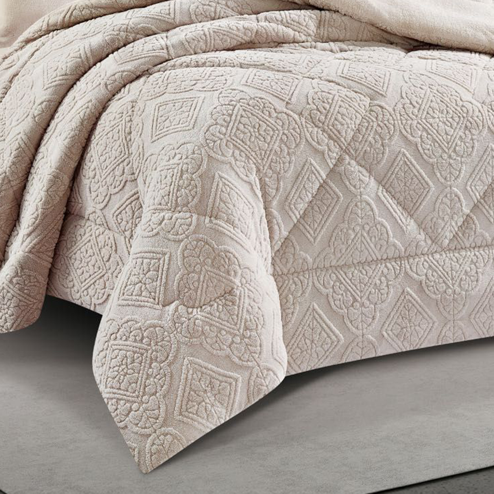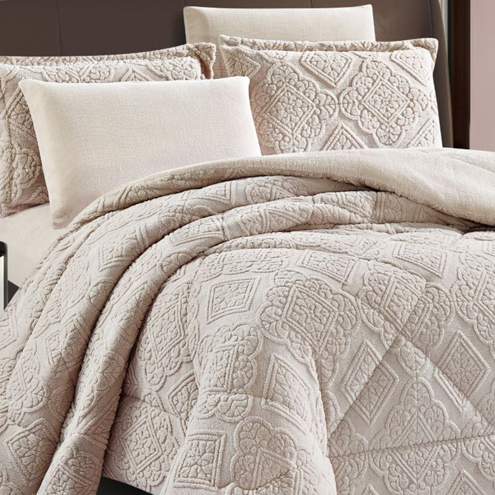 مفرش مخمل فرو شتوي محفر – دفا وفخامة في قطعة وحدة. تصميم محفر يعطيه لمسة راقية، وخامة المخمل الناعمة مع الفرو الكثيف تحافظ على الدفء طوال النوم
