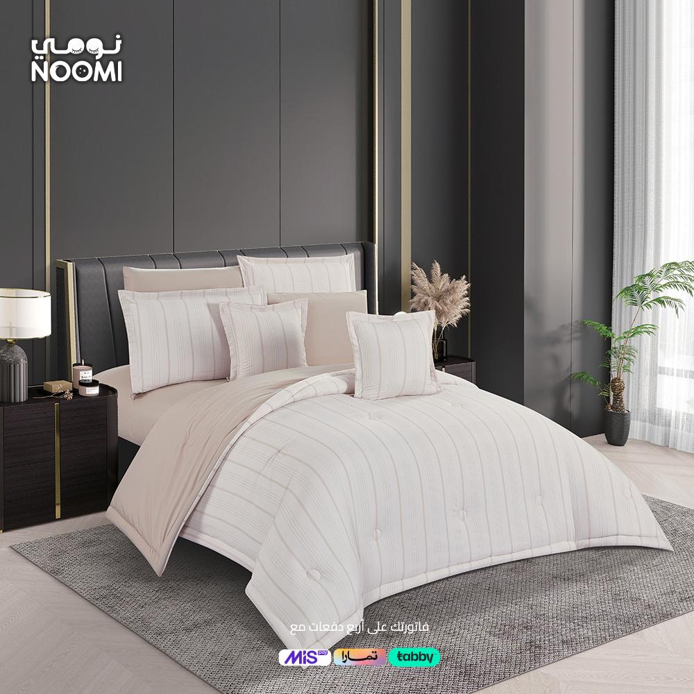 يتألق مفرش جومانا بتصميم يمزج بين سحر الفخامة وبهجة الألوان، ما يضفي لمسة فريدة و مميزة على غرفة نومك . تم صُنعه بدقة من المايكروفايبر عالي الجودة، ما يجعله لطيفًا على البشرة ويمنح تجربة نوم لا مثيل لها، فهو يُسهم في تنظيم درجة الحرارة وضمان ليالٍ هادئة ومريحة. لا يُقلّ حشوه عن فخامته، فهو متين وثابت ويبقى جميلاً وعملياً حتى بعد الغسيل المتكرر، مما يعزز شعورًا بالاسترخاء والراحة ويعمّق جودة النوم. بكل بساطة، إنه الاختيار المثالي لمن يريد ان يجمع بين التميز و الراحة في وقت واحد
