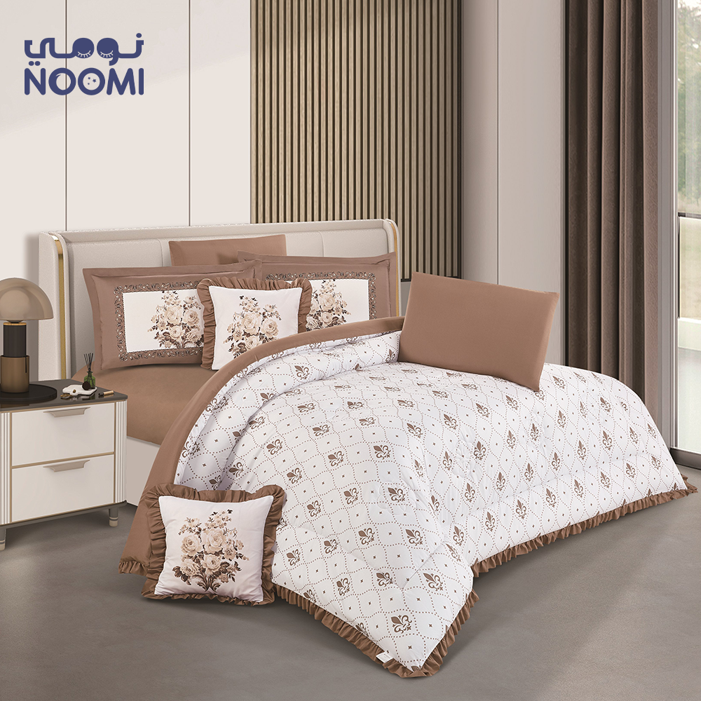 تأتي الألوان الجذابة والرائعة لهذا المفرش لتضفي لمسة من الهدوء والأناقة على غرفة نومك ، مما يعزز من جوٍ هادئ ومريح يسهم في استرخاء جسمك وعقلك بشكل تام. اختر من بين مجموعة متنوعة من التصاميم الراقية التي تناسب أسلوبك الشخصي وتجعل كل ليلة تجربة استثنائية من الراحة والنوم العميق.