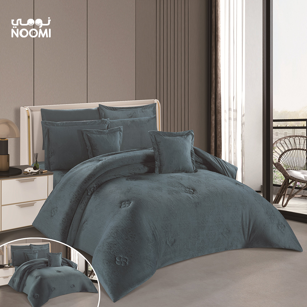 مفرش سيلا الشتوي مزدوج 8 قطع يأتي بوجهين ( وجه محفر مع وجه سادة )
