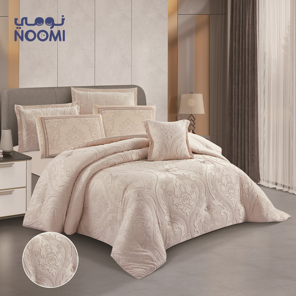 مفرش كراون مايكروفايبر مطرز  نفرواحد (نفرونص)  5 قطع بيج