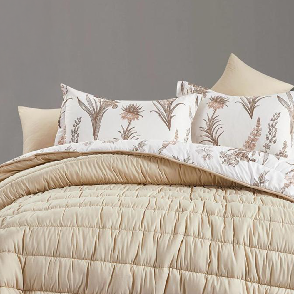 استمتع بنوم هانئ مع مفرش ياسمين، المصمم بعناية ليمنحك الدفء والراحة المثالية. يضفي لمسة من الرقي على غرفة نومك، مع نقشات ناعمة على الوسائد لإضافة لمسة فاخرة من الأناقة.