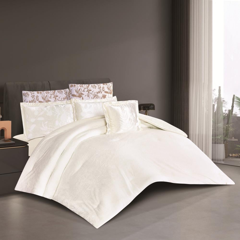 ميــرال مفرش شتوي مخمل فرو جاكار نفرين 7 قطع- أبيض